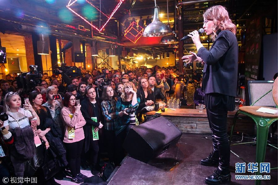 當(dang)地時間(jian)2月3日(ri),俄羅(luo)斯(si)圣彼得(de)堡(bao),俄羅(luo)斯(si)電視(shi)節目主持人、總統候選人克謝尼婭·索布恰克會(hui)見(jian)支(zhi)持者。(圖片來源(yuan):視(shi)覺中(zhong)國(guo))