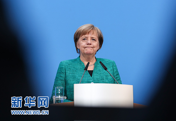 2月7日,在德國首都柏林的基民盟總部,德國總理、聯盟黨領導人默克爾出席新聞發布會。新華社記者 單宇琦 攝