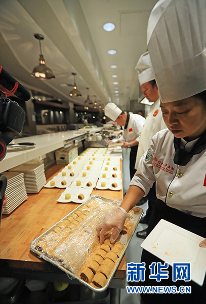 參加活動的“中華老字號”企業全聚德、東來順的頂級廚師為現場觀眾展示了蓑衣黃瓜、蒙面刀工等烹飪技巧,龍須拉面細如發絲,用打火機靠近,瞬間呈現出遇火即燃的神奇一幕。中國廚師們的精湛技藝令來賓贊嘆不已。