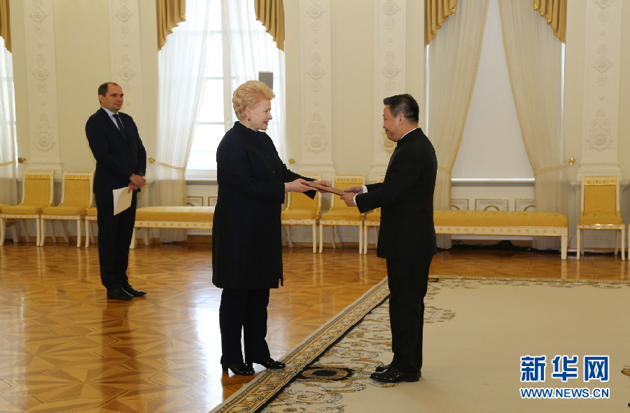 2月26日,在立陶宛首都維爾紐斯,中國駐立陶宛大使申知非向立陶宛總統格里包斯凱特遞交國書。新華網發 郭明芳攝