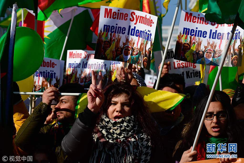 當地時(shi)間2018年3月(yue)3日,德國柏(bo)林(lin),當地民眾舉行(xing)游行(xing),抗議土耳其對敘(xu)利(li)亞阿夫林(lin)地區的(de)庫爾德人采取軍事行(xing)動。(圖(tu)片來(lai)源(yuan):視覺(jue)中國)