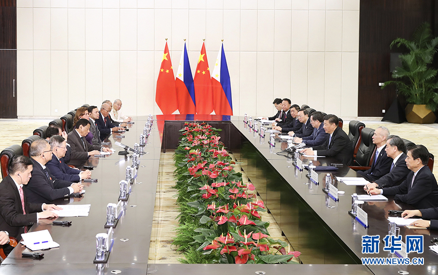4月10日,國家主席習近平在海南省博鰲國賓館會見菲律賓總統杜特爾特。 新華社記者 謝環馳 攝
