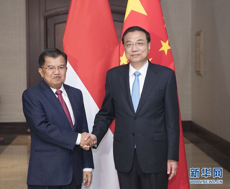 當地時間5月7日晚,國務院總理李克強在雅加達下榻飯店會見印度尼西亞副總統卡拉。 新華社記者王曄攝