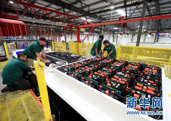美國工人在比亞迪工廠內忙碌。新華網發 李穎攝