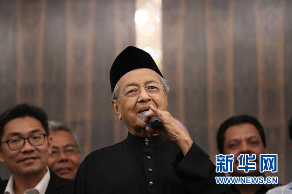 5月10日,在馬來西亞必打靈查亞,馬哈蒂爾宣誓就任總理后出席新聞發布會。新華社記者朱煒攝