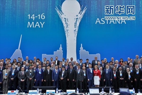 5月14日,在阿斯塔納,參會者合影。新華網發 阿比洛夫攝