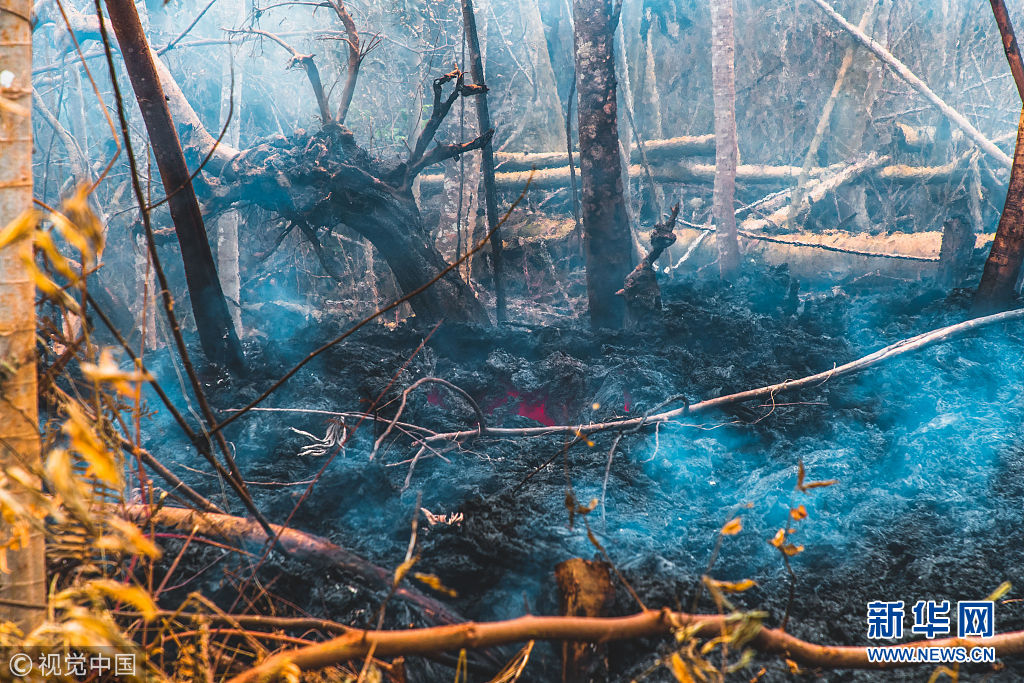 5月(yue)13日,美國夏(xia)威夷,基拉韋(wei)厄火山仍處于持續噴發的狀態,火山周圍又出現(xian)了新的噴發裂縫。(圖片來(lai)源(yuan):視覺中國)