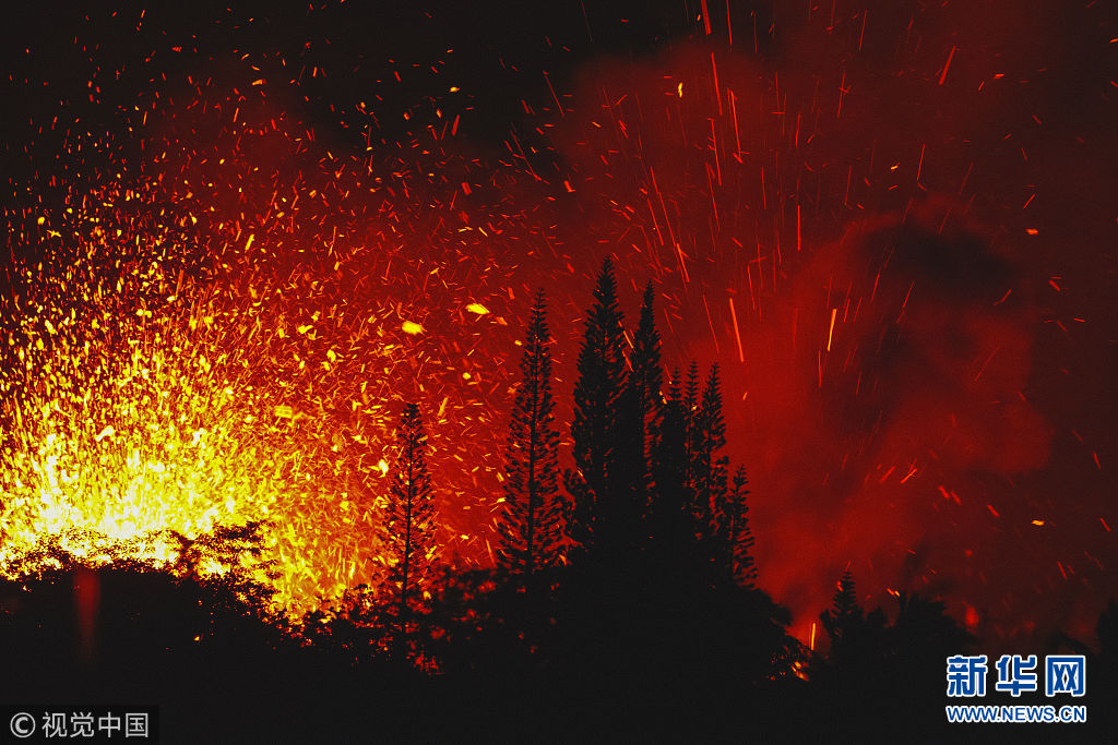 夏威夷基拉韋厄火山持(chi)續噴(pen)發(fa) 再出現新裂縫(feng)(組圖)