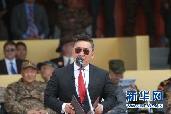 蒙古國總統巴特圖勒嘎檢閱儀仗隊。新華社記者阿斯鋼 攝