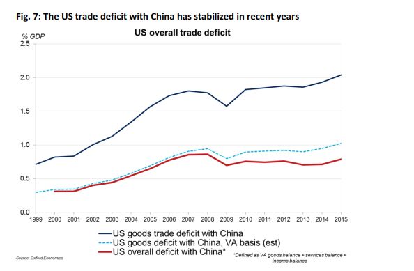 別看(kan)這個歐洲智庫的(de)數據有(you)點(dian)舊(jiu),在2018年(nian)的(de)今天,情況還是一樣一樣的(de)。美(mei)國CNBC上個月(yue)的(de)一篇報道中就(jiu)引用了來自牛津(jin)大學的(de)數據稱(cheng),如果按照各國實際在貿(mao)易中的(de)“附加價值”計算,中美(mei)現在3700億的(de)貿(mao)易逆差會縮小(xiao)一半之巨,即從(cong)美(mei)國GDP的(de)2%縮小(xiao)到1%——這已經與歐盟相(xiang)當了。