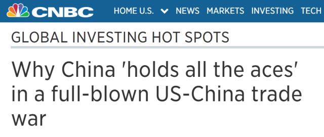 因此,CNBC這篇文章的(de)作者也得(de)出(chu)了與“布(bu)魯金斯學會”一樣的(de)結論,即(ji)特朗普(pu)現在對中(zhong)國(guo)的(de)打擊只會傷及自(zi)身和盟友。這位作者甚至也列舉了CBS新(xin)聞網(wang)今(jin)天提(ti)到的(de)那個iPhone手機的(de)例子,并認為(wei)一旦中(zhong)美貿易(yi)戰“全面爆發”,中(zhong)國(guo)手上(shang)可打的(de)“王牌”要比美國(guo)多。