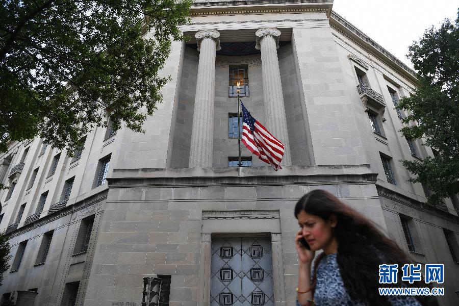 這是7月13日在美國華盛頓拍攝的司法部大樓。美國特別檢察官辦公室13日向12名俄羅斯人提起訴訟,稱其涉嫌在2016年干預美國總統選舉。負責“通俄門”調查的司法部副部長羅德·羅森斯坦當天在發布會上說:“本次控訴具名指控12名俄軍方人士合謀干預美國2016年總統選舉。” 新華社記者 劉杰 攝