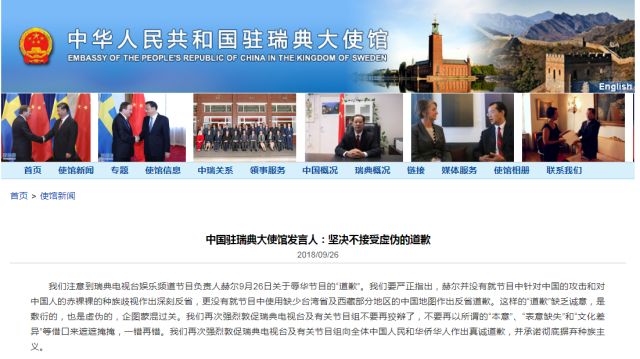 我(wo)(wo)們注意到瑞典電(dian)視(shi)臺娛樂頻道(dao)節目(mu)(mu)負(fu)責人赫爾9月(yue)26日(ri)關(guan)于(yu)辱華(hua)節目(mu)(mu)的“道(dao)歉(qian)(qian)”。我(wo)(wo)們要嚴正指出(chu),赫爾并(bing)(bing)沒(mei)(mei)有就(jiu)節目(mu)(mu)中針對(dui)中國(guo)的攻擊(ji)和對(dui)中國(guo)人的赤裸(luo)裸(luo)的種(zhong)族歧視(shi)作(zuo)出(chu)深刻反(fan)省(sheng),更沒(mei)(mei)有就(jiu)節目(mu)(mu)中使用(yong)缺少臺灣省(sheng)及(ji)西藏(zang)部分(fen)地(di)(di)區的中國(guo)地(di)(di)圖(tu)作(zuo)出(chu)反(fan)省(sheng)道(dao)歉(qian)(qian)。這樣(yang)的“道(dao)歉(qian)(qian)”缺乏誠意,是敷衍的,也(ye)是虛偽的,企圖(tu)蒙混過關(guan)。我(wo)(wo)們再(zai)次(ci)強(qiang)烈敦促瑞典電(dian)視(shi)臺及(ji)有關(guan)節目(mu)(mu)組不(bu)要再(zai)狡(jiao)辯了,不(bu)要再(zai)以所謂(wei)的“本(ben)意”、“表意缺失”和“文化(hua)差(cha)異”等借(jie)口來遮遮掩掩,一錯再(zai)錯。我(wo)(wo)們再(zai)次(ci)強(qiang)烈敦促瑞典電(dian)視(shi)臺及(ji)有關(guan)節目(mu)(mu)組向全體中國(guo)人民和華(hua)僑華(hua)人作(zuo)出(chu)真誠道(dao)歉(qian)(qian),并(bing)(bing)承諾徹底摒棄(qi)種(zhong)族主義。