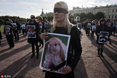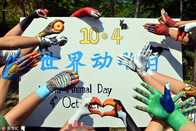 大學生們將手畫成孔雀、鴿子、蝴蝶……