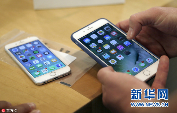 美國芝加哥,顧客正在體驗全新蘋果智能手機。