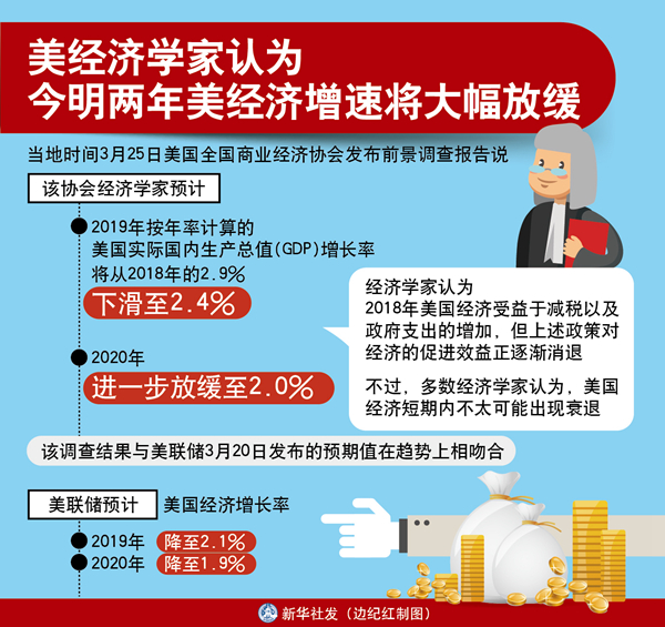 新華社華盛頓(dun)3月(yue)25日電(記(ji)者許緣 鄧仙來)美(mei)國(guo)全國(guo)商(shang)業經(jing)濟(ji)(ji)協會25日發布前景調查(cha)報告說,該(gai)協會經(jing)濟(ji)(ji)學家(jia)預測(ce),主要受全球(qiu)經(jing)濟(ji)(ji)增長放緩(huan)(huan)和美(mei)國(guo)貿易(yi)政(zheng)策影響,今明兩年美(mei)國(guo)經(jing)濟(ji)(ji)增速(su)將大幅(fu)放緩(huan)(huan)。