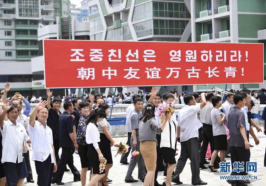 6月20日,中共中央總書記、國家主席習近平乘專機抵達平壤,開始對朝鮮民主主義人民共和國進行國事訪問。這是在平壤街頭歡迎習近平來訪的朝鮮民眾。新華社記者 燕雁 攝