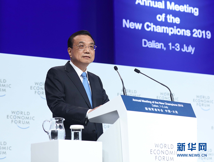 7月2日,國務院總理李克強在大連出席2019年夏季達沃斯論壇開幕式并發表特別致辭。 新華社記者 劉衛兵 攝