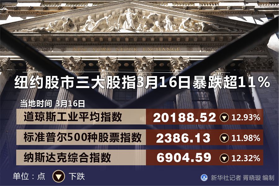 為應對新冠肺炎疫情對經濟的沖擊,美聯儲15日宣布緊急下調基準利率1個百分點并再度啟動量化寬松措施,但金融市場并未給予積極回應。紐約股市16日開盤暴跌并再次觸發熔斷機制,重啟交易后跌幅擴大,收盤時三大股指跌幅均超過11%。