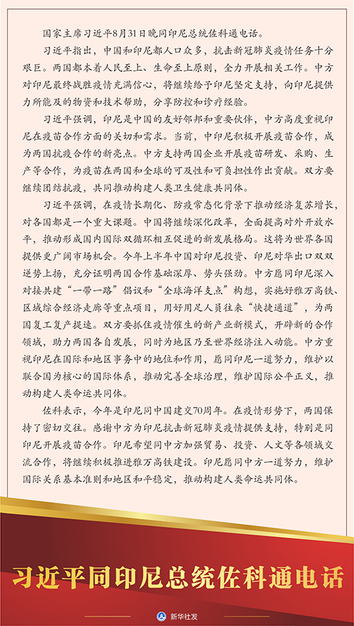 圖表:習近平同印尼總統佐科通電話 新華社發