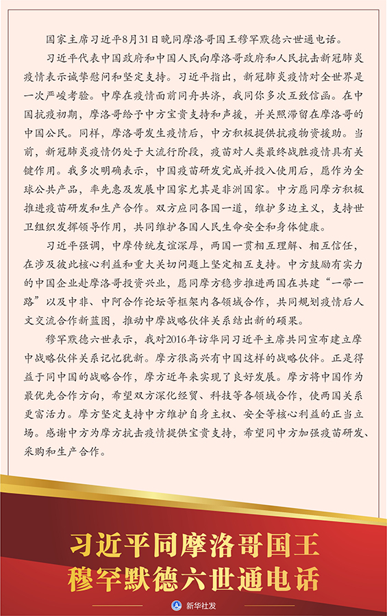 圖表:習近平同摩洛哥國王穆罕默德六世通電話 新華社發