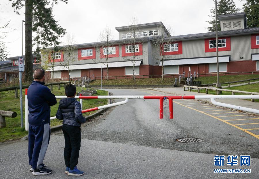 11月15日,在加拿大不列顛哥倫比亞省薩里,居民觀望一所因出現新冠疫情關閉的學校。新華社發(梁森攝)