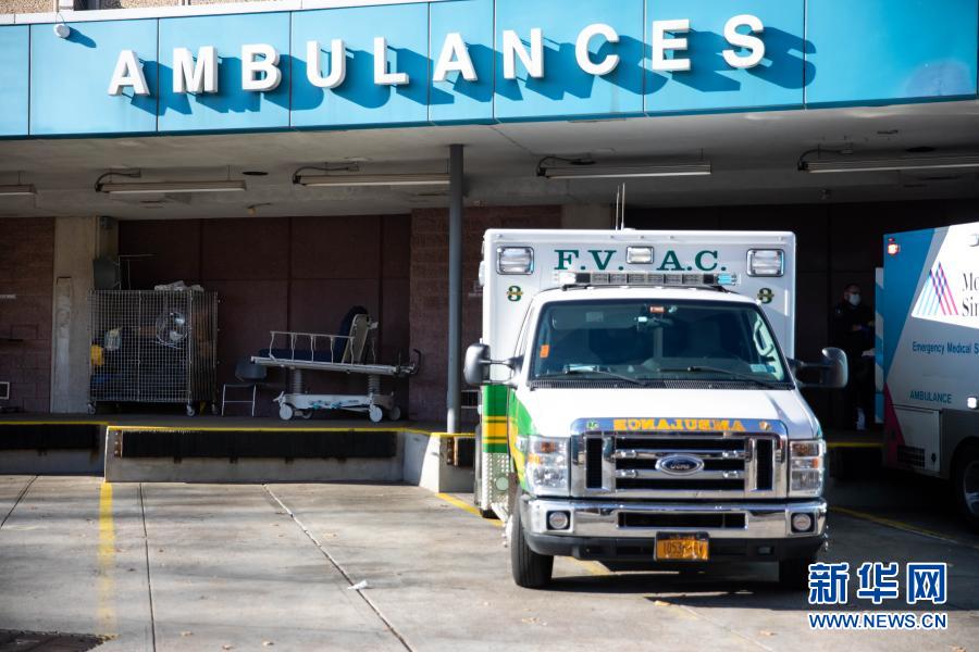 12月3日,在美國紐約,救護車停在一家醫院的急診室外。