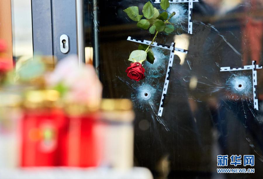 11月5日,奧地利維也納的槍擊事件現場放置著悼念遇難者的鮮花和蠟燭。2日晚發生的槍擊事件造成多人傷亡。奧總理庫爾茨譴責這起事件是“卑劣的恐怖襲擊”。新華社發(喬治斯·施耐德攝)