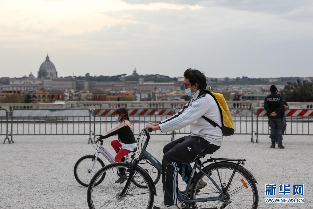 4月3日,人們(men)騎車經過(guo)意大(da)利羅馬的蘋(pin)丘觀景臺。