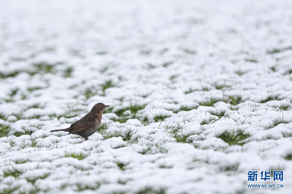 4月7日(ri),一只鳥在比利(li)時布魯塞爾(er)五十周年紀(ji)念(nian)公(gong)園積雪的草(cao)地上覓食。