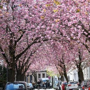 近日,德國西(xi)部城(cheng)市波(bo)恩老城(cheng)區的(de)櫻(ying)花盛(sheng)開,吸引(yin)了許多游(you)人前(qian)來觀賞。