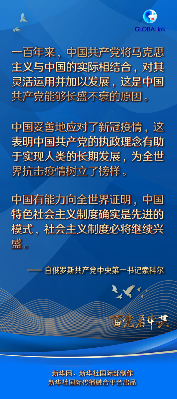新華社明斯克6月7日電 “一百年來,中國共產黨將馬克思主義與中國的實際相結合,對其靈活運用并加以發展,這是中國共產黨能夠長盛不衰的原因。”白俄羅斯共產黨中央第一書記索科爾日前在首都明斯克接受新華社記者專訪時,談到中共百年興盛的關鍵所在。