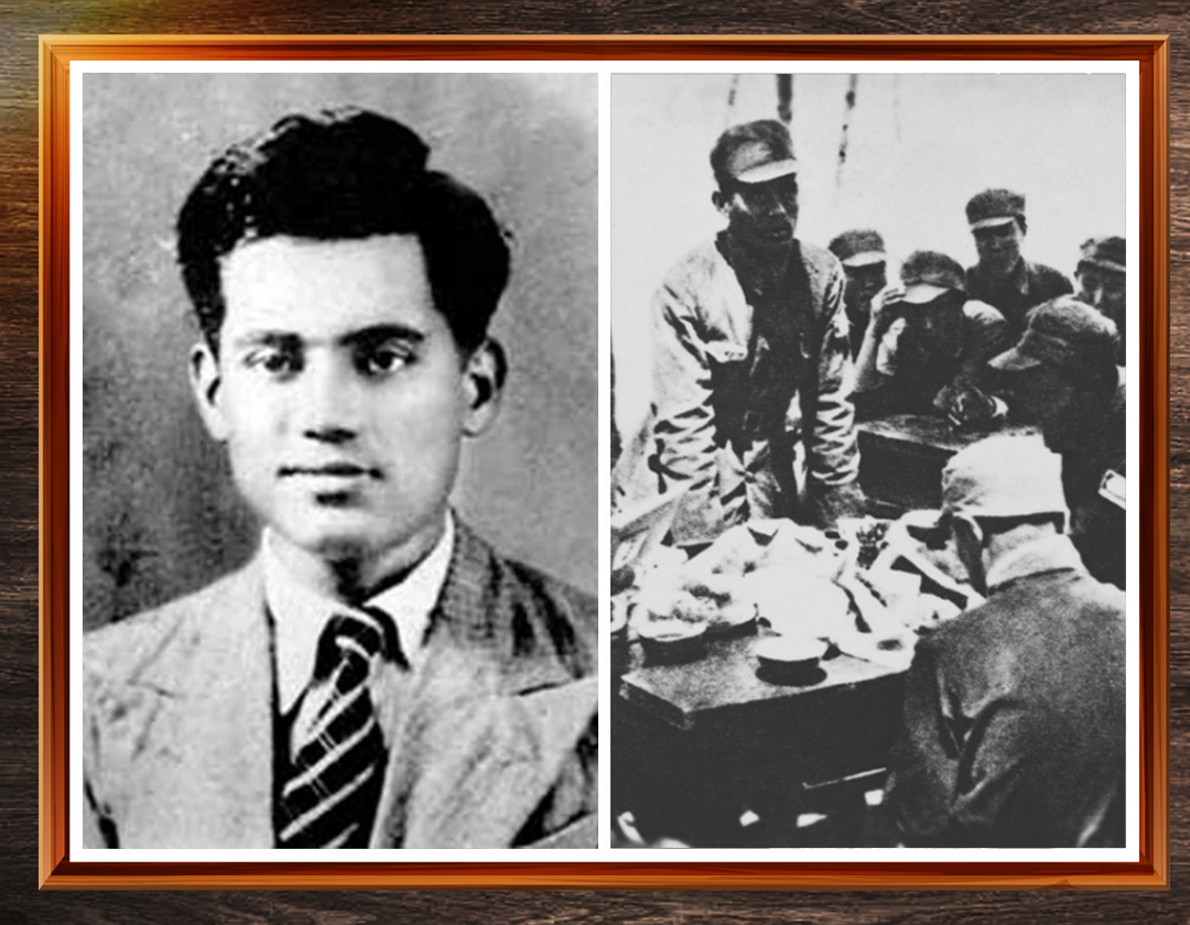 左圖是柯棣華;右圖是1941年12月,柯棣華(中間站立者)給晉察冀八路軍干部作報告。