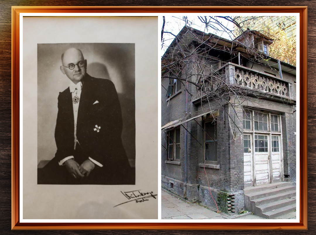 左圖是拍攝于1938年的約翰·拉貝照片;右圖是2005年12月在南京大學校內拍攝的約翰?拉貝故居。