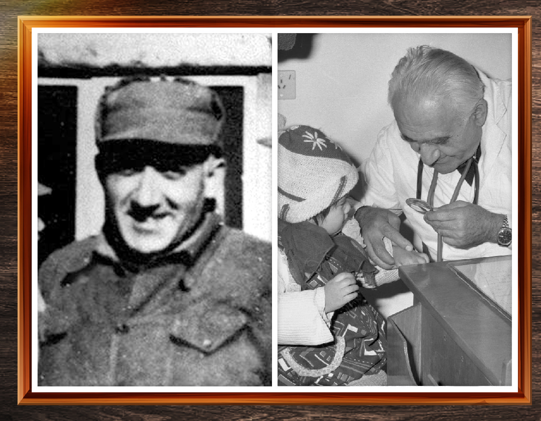 左圖是1943年,米勒在延安國際和平醫院任內科主任的資料照片;右圖是1981年,米勒教授(中)和醫生一起查病房。