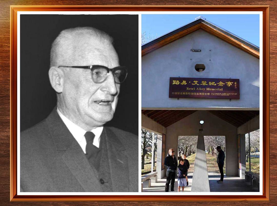 左圖是新西蘭友人艾黎;右圖是位于新西蘭斯普林菲爾德的艾黎紀念亭。
