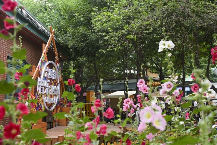 高大楊樹掩映下,特色民居錯落有致分布,街巷邊小渠流水潺潺。房前屋后、大街小巷的鮮花綠植,將這里裝點成名副其實的田園城市。依托風情十足的環境,本地居民和外地創客開設了民宿、餐飲、文創旅拍、手工藝品店等各類商業網點幾百家。