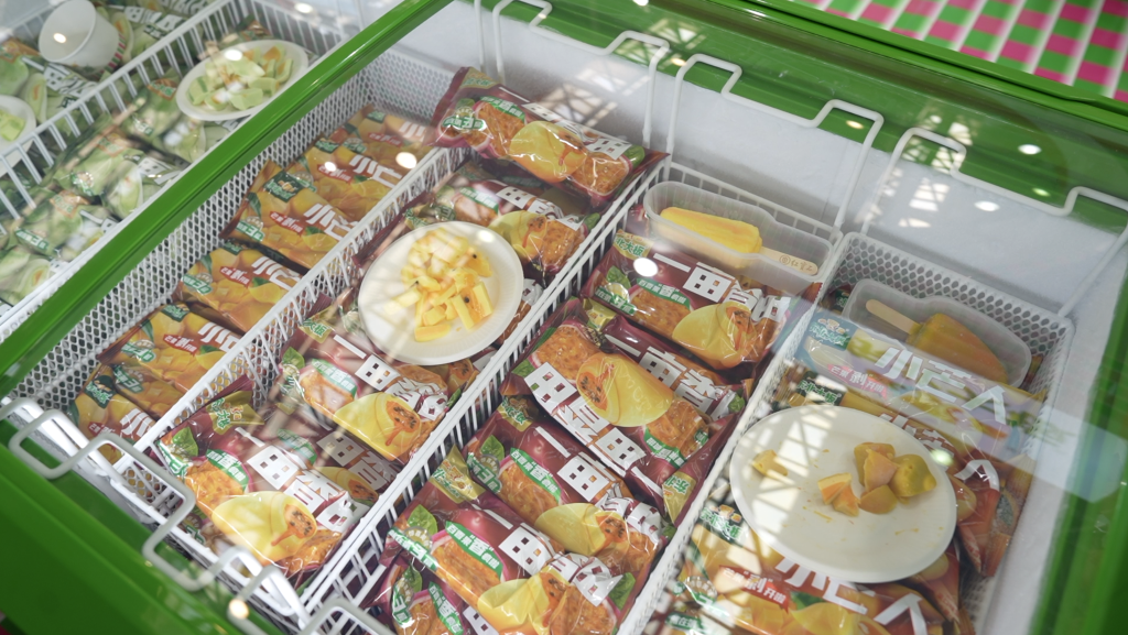 在東北大板品牌展區,蜜瓜、芒果、百香果造型的水果味冰淇淋吸引了眾多客商品嘗,該系列產品遠銷新西蘭、加拿大、馬來西亞、新加坡等國家和地區。