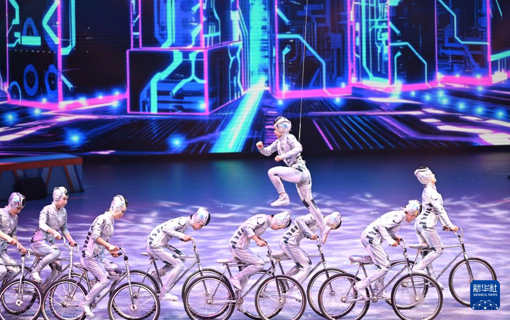 9月28日,演員在第二十屆中國吳橋國際雜技藝術節開幕式上表演。新華社記者 牟宇 攝