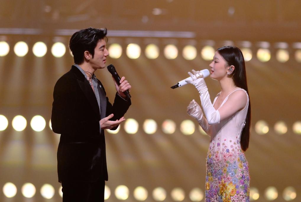9月28日,王力宏(左)和單依純在演唱《落葉歸根》。