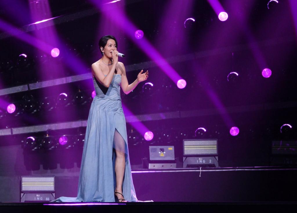9月28日,梁詠琪在演唱《膽小鬼》。