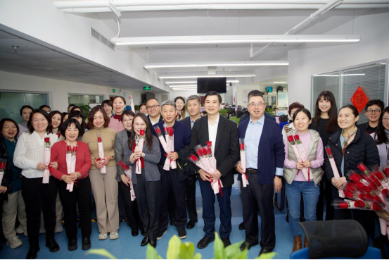 3月7日,在“三八”國際勞動婦女節到來之際,儲學軍同志等公司領導,及工會、婦委會向公司女員工送上鮮花等慰問品,向大家致以節日問候。
