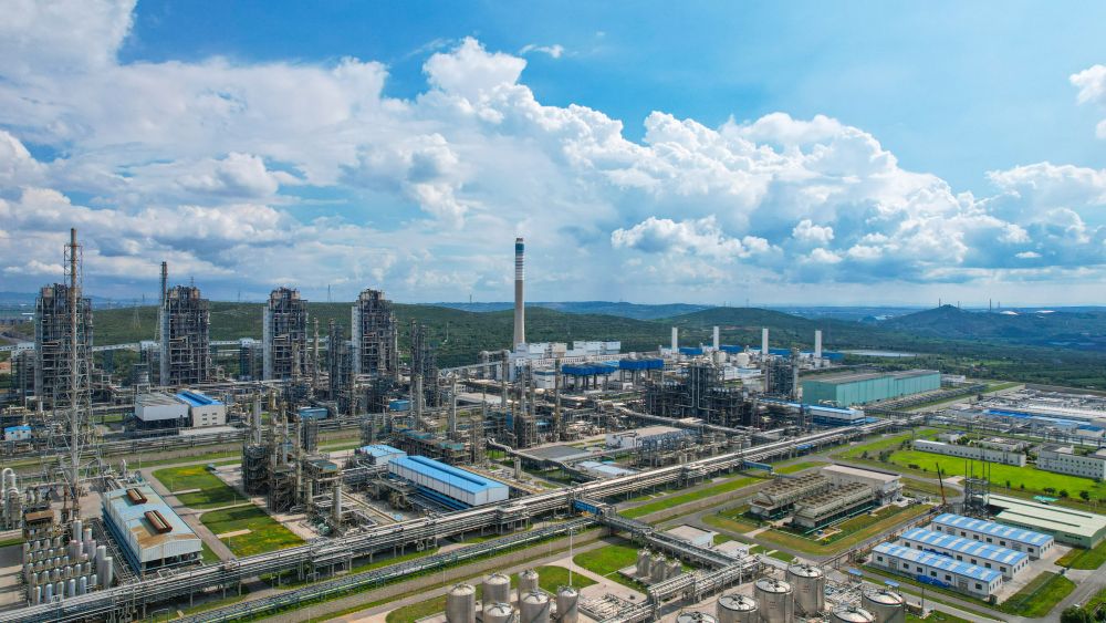這是2025年7月23日在山西省長治市拍攝的潞安化工集團煤基清潔能源公司廠區全景(無人機照片)。新華社發