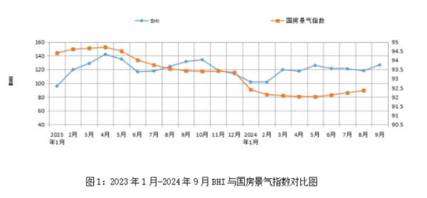 新華網北京10月16日電(記者 王日晨)10月15日,由商務部流通業發展司立項、中國建筑材料流通協會編制并發布的全國建材家居景氣指數BHI9月份為126.68,環比上漲8.54點,同比下跌4.87點。全國規模以上建材家居賣場9月銷售額為1422.48億元,環比上漲14.37%,同比下跌2.21%;1-9月累計銷售額為10854.92億元,同比下跌4.87%。