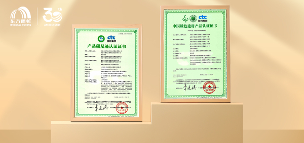 在低碳技術與環保宜居產品研發應用方面,東方雨虹在以先進防水材料全國重點實驗室為核心的高能級創新平臺的驅動下,緊密圍繞低碳環保、提質降耗、協同增效等方面精準發力,并取得了一系列令人矚目的成果:不僅先后斬獲國內首張“綠色建材認證證書”、行業首張“產品碳足跡認證證書”,更有數款產品獲得海內外權威認證,彰顯了其在綠色建材領域的卓越實力。