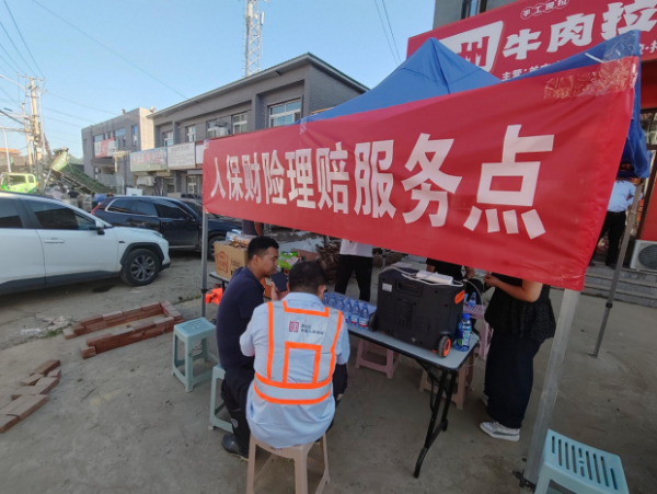 人保財險天津分公司搭建紅頂棚積極開展搶險救災工作