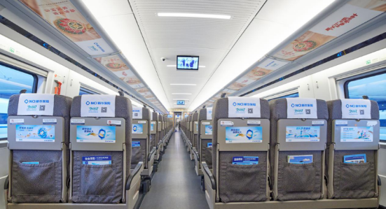 依托高鐵的強大客流和獨特場景優勢,新華保險創新打造“沉浸式媒體展示+首發儀式+車上互動”立體化傳播新范式。在高鐵這一沉浸式“品牌移動展廳”中,車身彩貼、頭片、桌貼、品牌天幕、海報等全媒體載體,全方位、多維度展示了新華保險的品牌實力與產品服務優勢。該公司還聯動哈爾濱、西安、杭州、石家莊、深圳、上海、鄭州、北京等核心城市,開展車站首發儀式和車上打卡互動體驗活動。