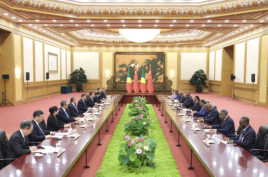 薩蘇表示,中國成功舉行紀念抗日戰爭勝利80周年活動,充分展現中國人民的勇氣和世界人民的團結,很榮幸能夠參與這一活動,與中方共同維護和平、開創未來。剛中關系提至高水平命運共同體,為雙方確立了共同繁榮、共同發展的新框架。剛方堅定奉行一個中國原則,期待密切同中方各領域合作,為兩國關系注入強勁動力。作為中非合作論壇共同主席國,剛方愿同中方一道,推動中非合作得到更大發展,助力非洲國家經濟社會發展。剛方完全贊同習近平主席提出的全球治理倡議,這一重大倡議有助于推動構建更加公正合理的國際治理體系,讓全球南方國家受益。剛方高度評價中國對非洲國家實施零關稅,愿把握這一非中貿易政策新機遇。