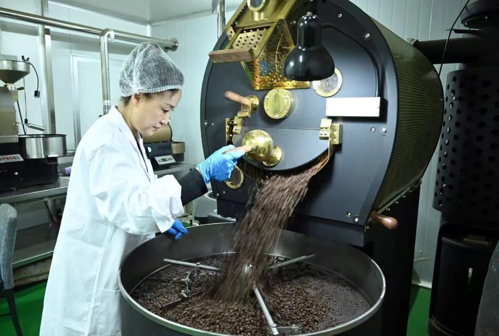 圖為位于延吉市依蘭鎮的一家咖啡豆烘焙廠烘炒間。(延邊州委宣傳部供圖)